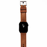 Clean and smooth yet highly durable Iberian leather gives this exceptionally stylish hand-crafted watch strap its timeless classic look. Fully customizable, this strap is available in a light Honey Brown, Coffee Brown, and Spicy Brown.